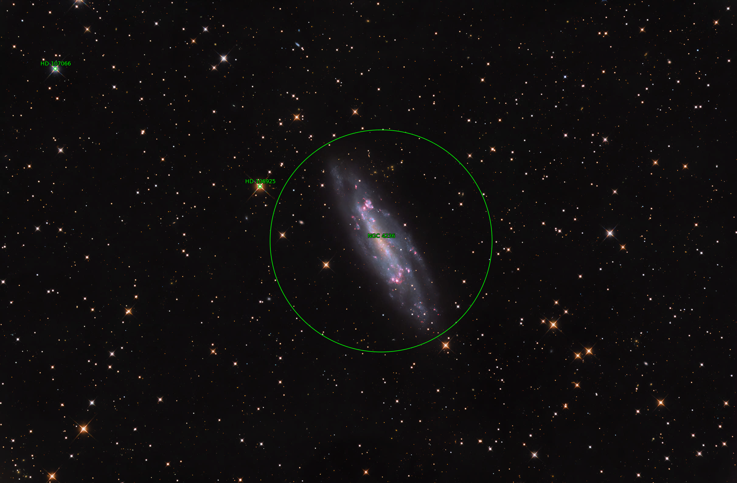 NGC 4236 ist eine ausgedehnte Balkenspiralgalaxie im Sternbild Drache und gehört zur M81-Galaxiengruppe. Sie befindet sich in einer Entfernung von etwa 11,7 Millionen Lichtjahren von der Erde und erstreckt sich über eine Länge von rund 77.000 Lichtjahren.