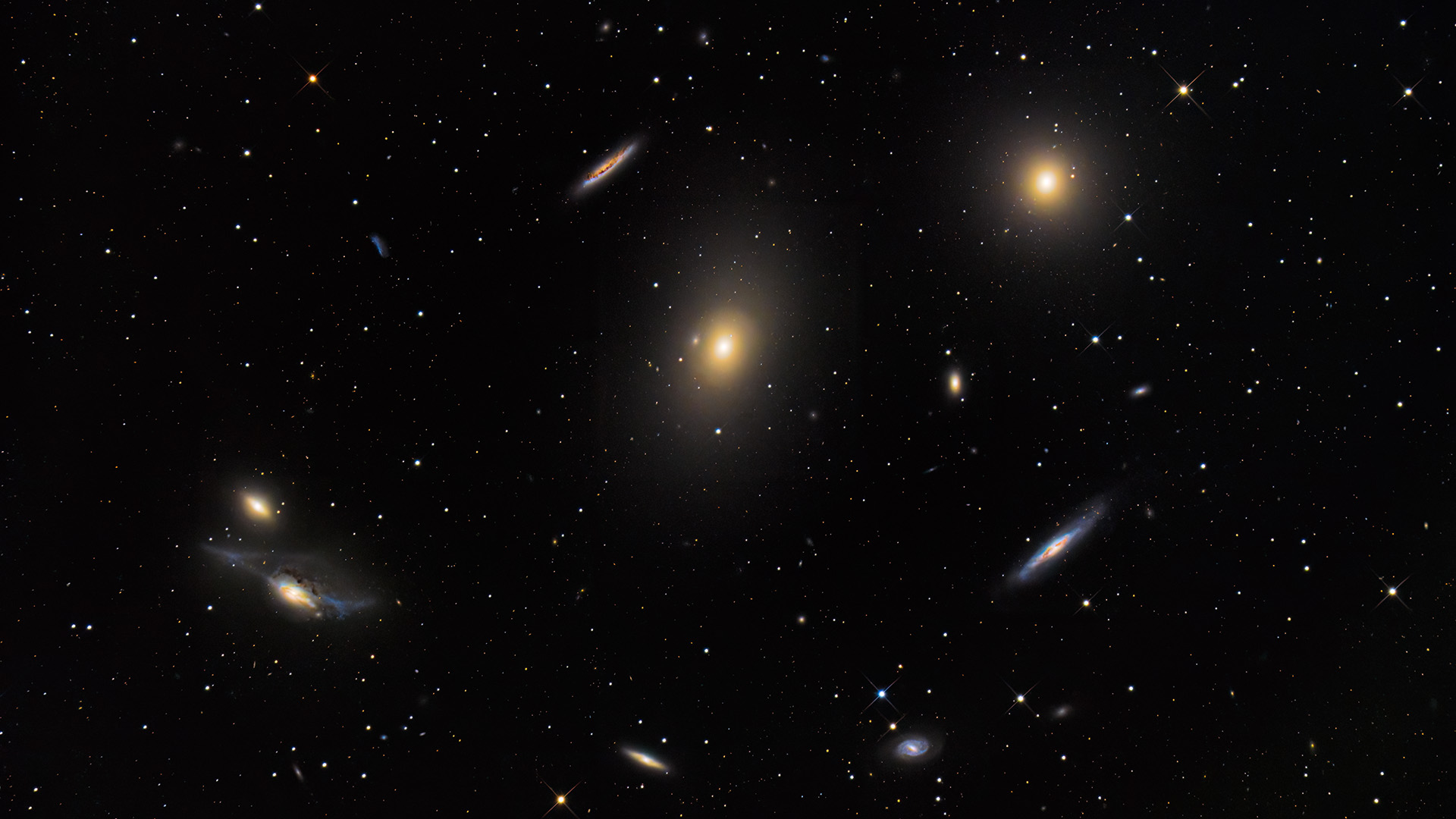 Der Virgo-Galaxienhaufen ist eine Ansammlung von mehr als 1.300 Galaxien, die sich im Sternbild Jungfrau befindet und etwa 65 Millionen Lichtjahre von der Erde entfernt. Es ist der nächstgelegene reiche Galaxienhaufen zur Milchstraße.